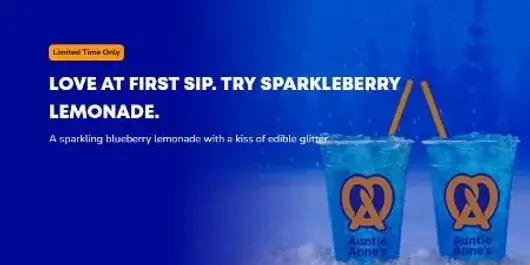 A sparkling blueberry Lemonade with a kiss of edible glitter. Try it now!